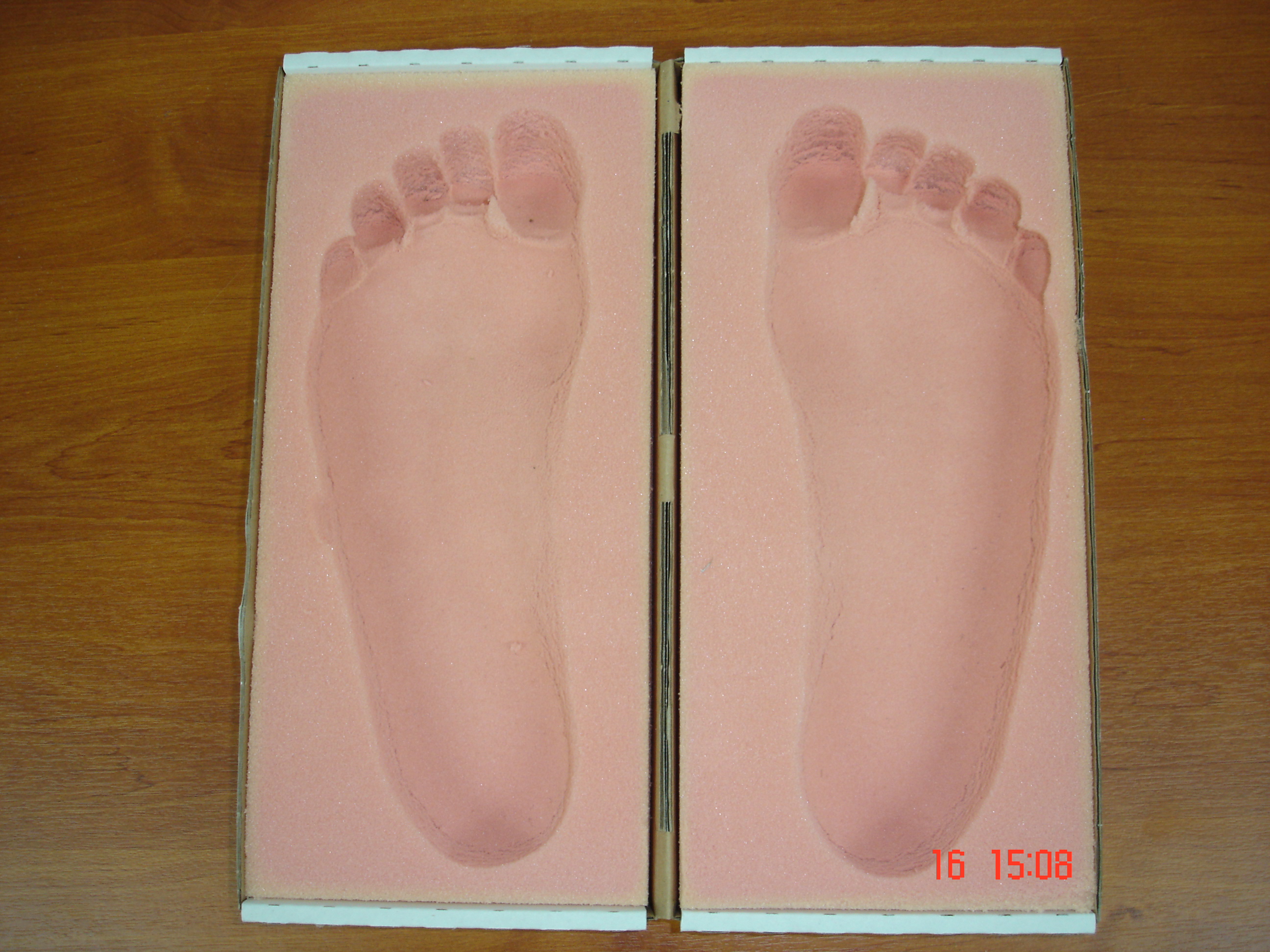 Τα πέλματα κατασκευάζονται σύμφωνα με τις παραπάνω μετρήσεις και πάντα παίρνοντας υπ’ όψιν την ηλικία, το βάρος και τις δραστηριότητες του κάθε εξεταζόμενου. Με άλλα λόγια το ειδικό ορθωτικό πέλμα κατασκευάζεται για το πόδι του κάθε ασθενή ξεχωριστά, για να έχει την καλύτερη δυνατή προσαρμογή (εικόνα 9).
